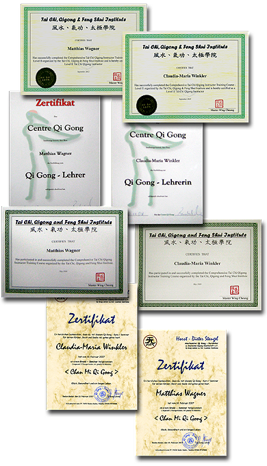 | 2009 - 2014 | "18 Bewegungen-Qigong" (Shíbāshì). Instructor training 1.- 4. set. Wing Cheung,,Tai Chi, Qigong and Feng Shui Institute. | |